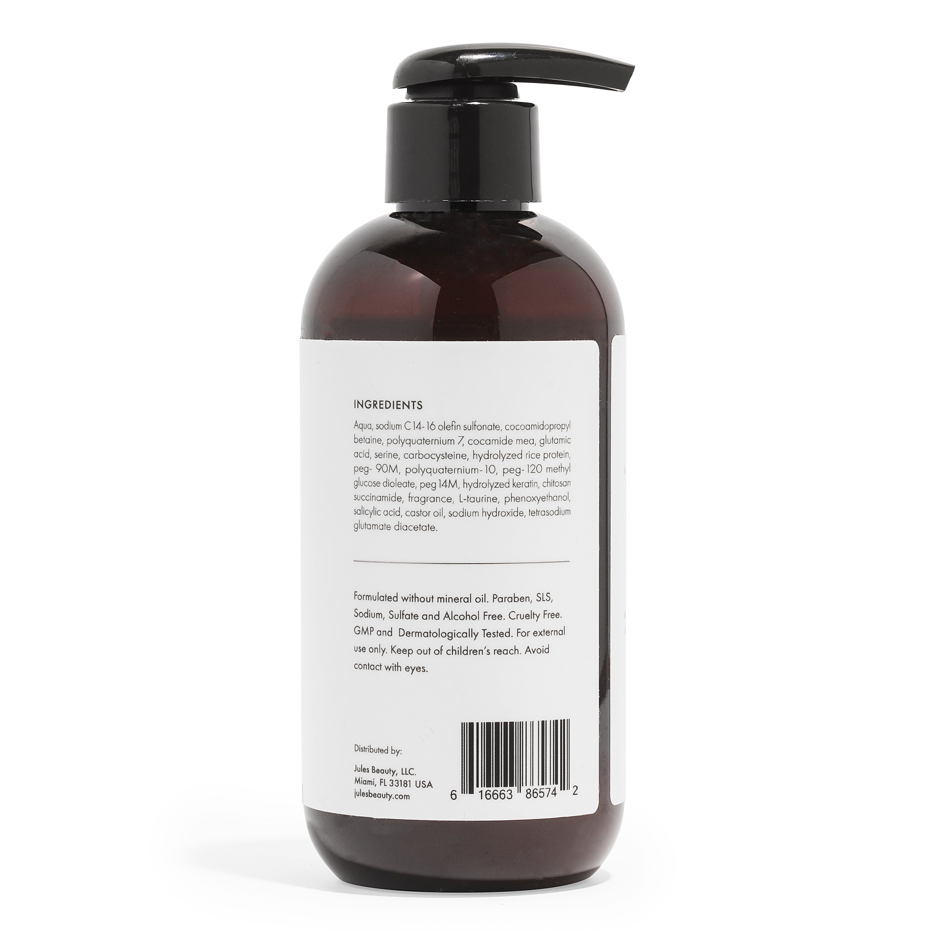 Aqua, sodium C14-16 olefin sulfonate, cocoamidopropyl betaine, polyquaternium 7, cocamide mea, glutamic acid, serine, carbocysteine, hydrolyzed rice protein, peg- 90M, polyquaternium-10, peg-120 methyl glucose dioleate, peg14M, hydrolyzed keratin, chitosan succinamide, fragrance, L-taurine, phenoxyethanol, salicylic acid, castor oil, sodium hydroxide, tetrasodium glutamate diacetate.